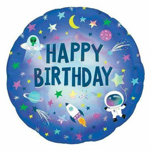 HBD OUTER SPACE HOLO ROUND 18 INCH FOIL BALLOON